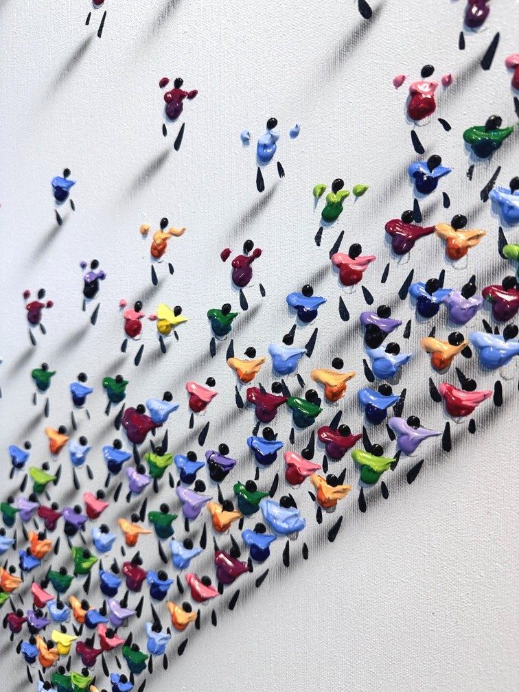 Seine Technik erinnert an Pointillismus, aber mit einer modernen, spontanen Note, die typisch für Francisco Bartus ist. Die Verwendung von Mischtechnik führt zu 3D-Effekten, die seine Stücke so außerordentlich unterschiedlich machen. Die Erhabenheit der Farbe ist auffällig und fügt Bartus’ Produktion eine weitere Dimension hinzu. Diese Tupfer variieren in Farbe, Größe und Dichte, was dem Bild eine einzigartige Textur und Tiefe verleiht. Die lebendigen Farben können von warmen Rottönen und Orangetönen bis hin zu kühlen Blautönen und Grüntönen reichen, wodurch das Bild eine positive und energetische Ausstrahlung erhält.